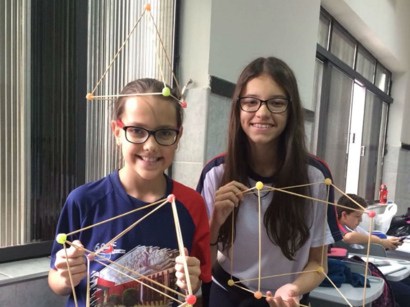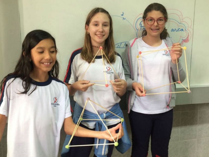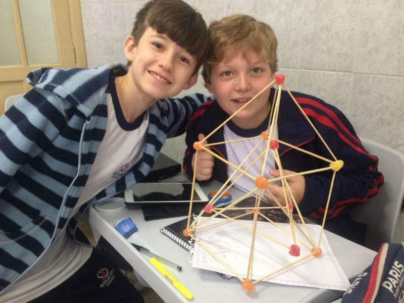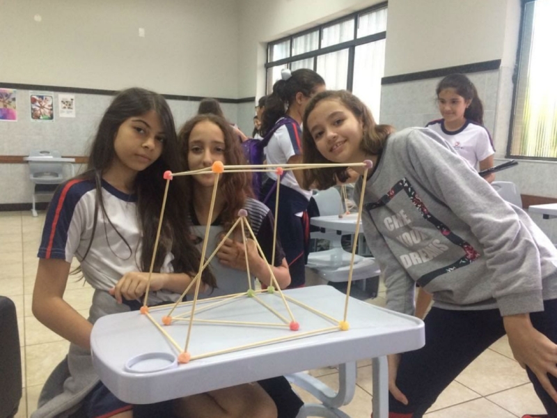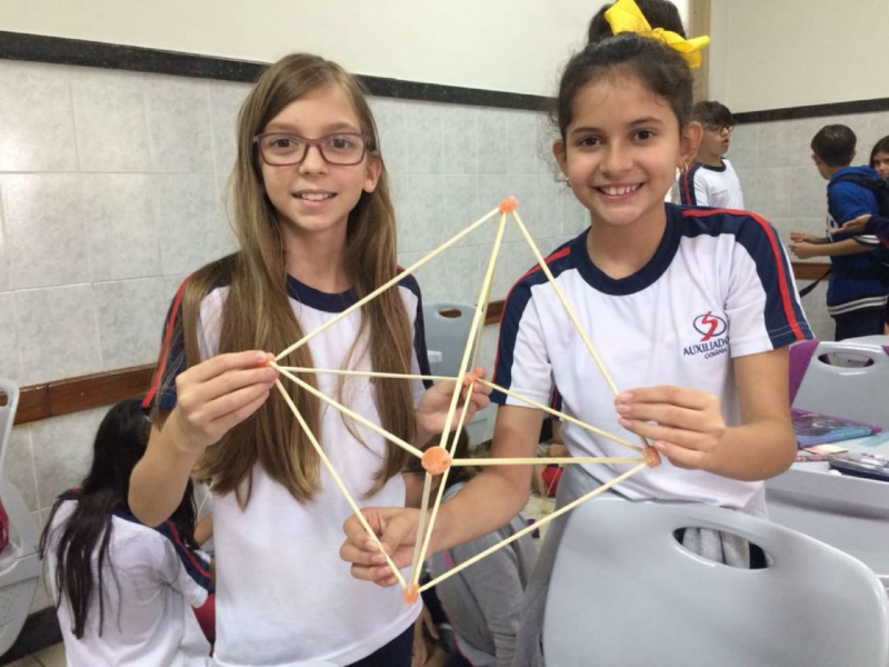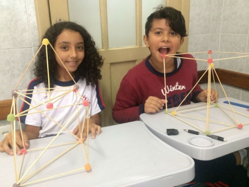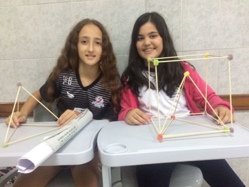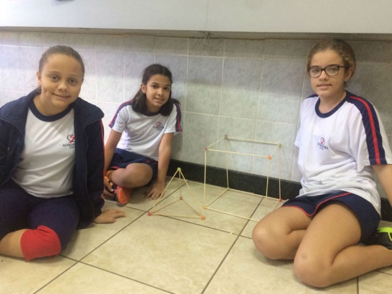 A Professora de Matemática do 6º ano, Sônia Vieira, utilizou atividades lúdicas, escolhendo a técnica com balas de jujuba e palitos de churrasco na construção de esqueletos de poliedros, de modo que as balas representam os vértices e palitos, as arestas. A construção de poliedros se torna fácil e rápida, facilitando seu uso na própria sala durante as aulas. Além disso, o material é de baixo custo e de fácil acesso.