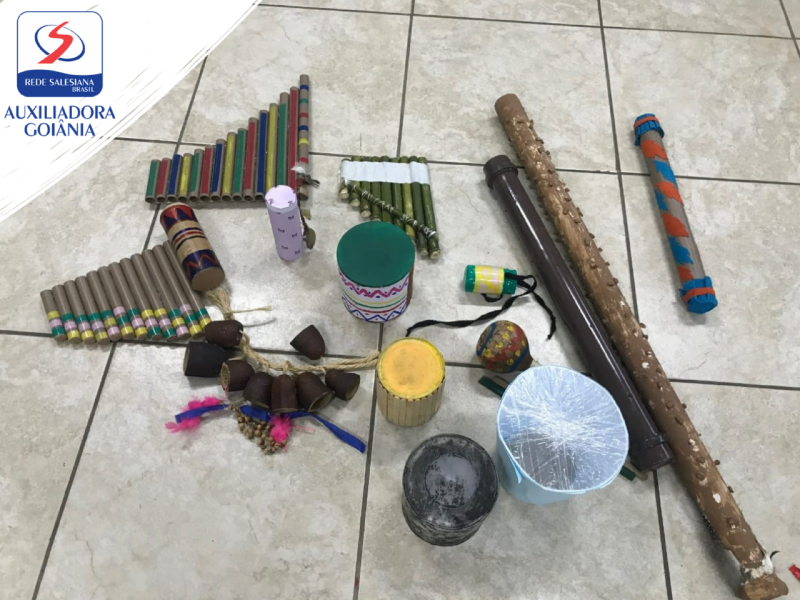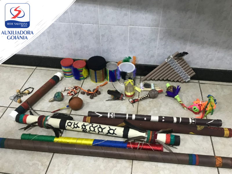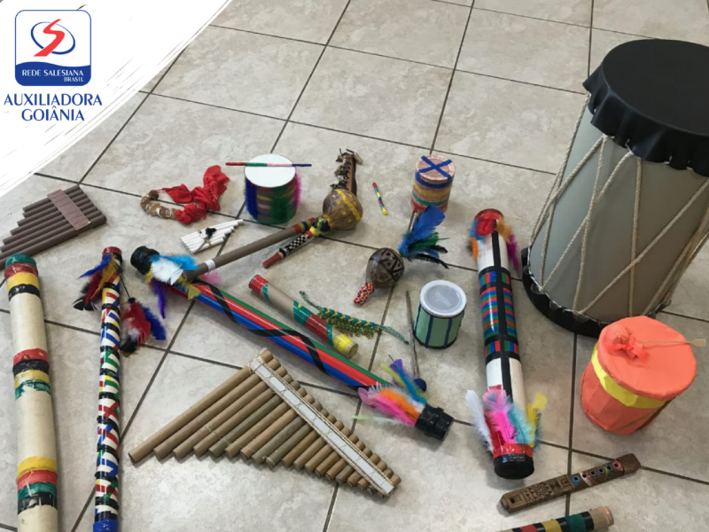 A música é muito importante para o índio, pois está presente nas diversas manifestações culturais e sociais de cada etnia, fazendo parte dos rituais, contato com os ancestrais e cura. Os índios brasileiros utilizam predominantemente instrumentos de sopro ou percussão. Nesse contexto, os alunos do 6º ano, orientados e instigados pela professora Cíntia, se divertiram e aprenderam muito com os instrumentos musicais que eles mesmos confeccionaram (tambor, pau de chuva, chocalho, flauta indígena e chocalho de pé).
