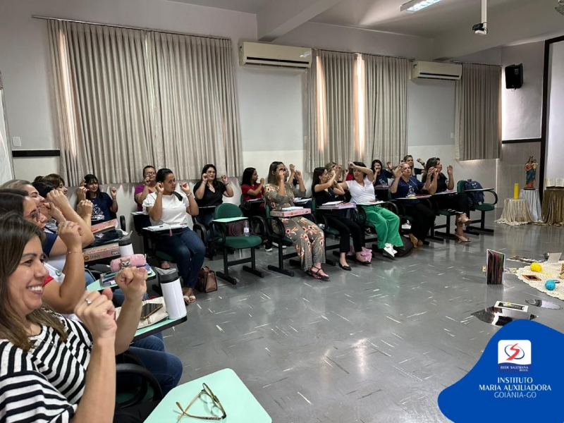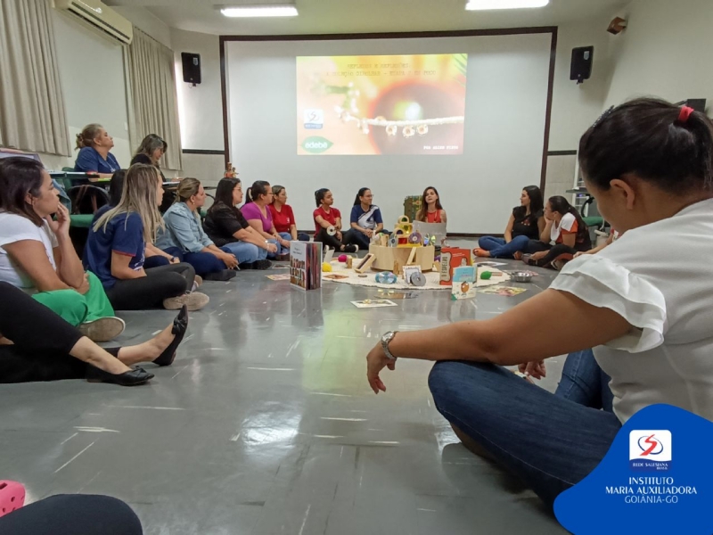 A presença da autora Aline ressalta a disposição da Inspetoria Madre Mazzarello (irmãs salesianas), da Rede Salesiana Brasil e da Editora Edebê, em oferecer às professoras assistência e capacitação profissional que auxilie na jornada de acompanhamento do desenvolvimento das crianças. Momentos ricos de troca de conhecimentos que são essenciais para a otimização do processo educacional.