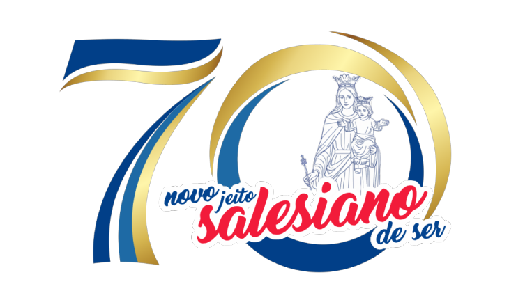 O selo comemorativo dos 70 anos do Instituto Maria Auxiliadora simboliza uma trajetória marcada pela fé, pela educação e pelo compromisso com a formação integral de crianças e adolescentes. O número 70, em destaque, representa sete décadas de presença educativa salesiana em Goiânia, unindo tradição e movimento, passado e futuro.