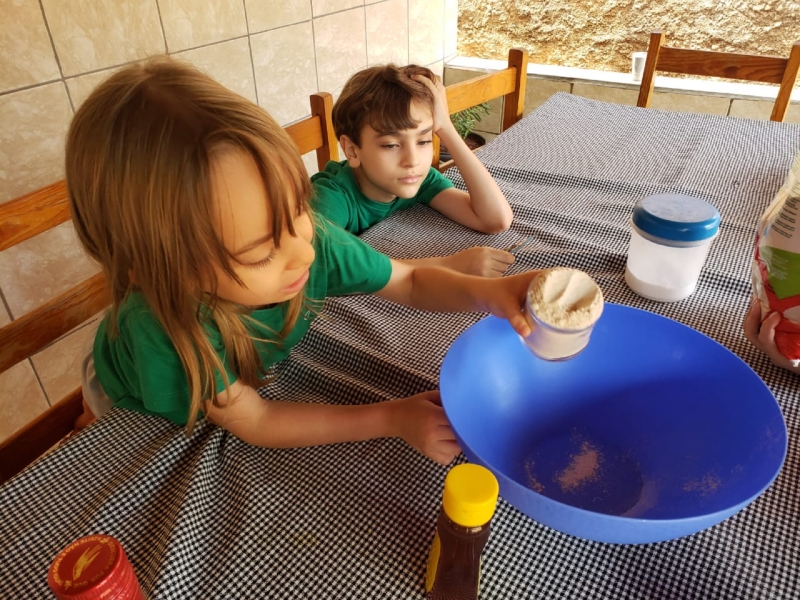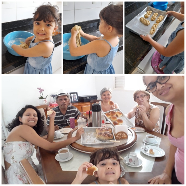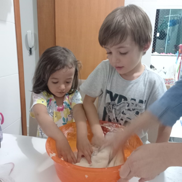 No 5º Giro, Mãos e muita imaginação, as crianças do Infantil 2 aprenderam que com as mãos nós podemos e devemos fazer o bem. E para o encerramento deste Giro, a proposta da atividade foi a produção de um pão muito especial: o Pão da Amizade. As crianças seguiram a receita e, depois de pronta, escolheram alguém para compartilhar esta preciosidade que é o "Pão da Amizade."