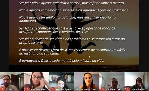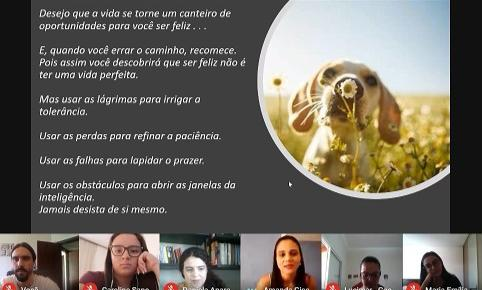 Teve acolhida do professor Henderson, poema da professora Amanda, professor Carlos tocando música, mensagens de carinho das professoras Ieda e Devânia e lindos recadinhos da Lucimar, Cristiane, Cecília e Tatiane.