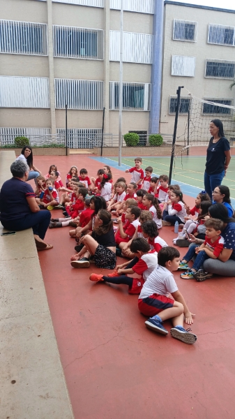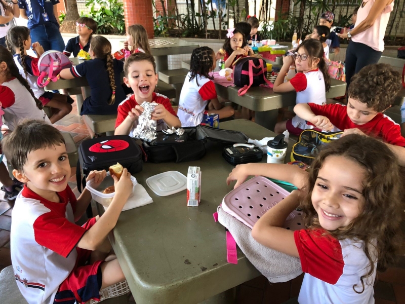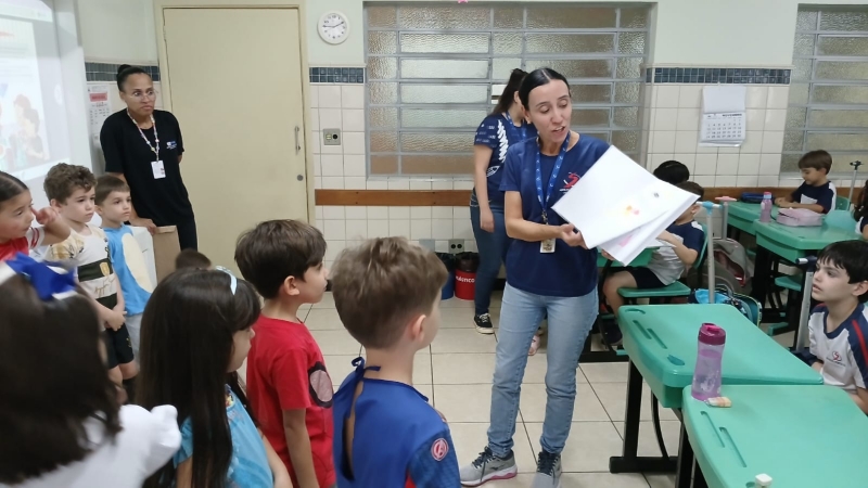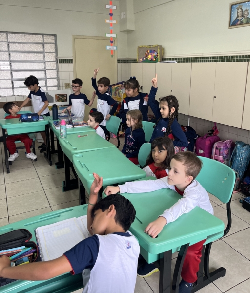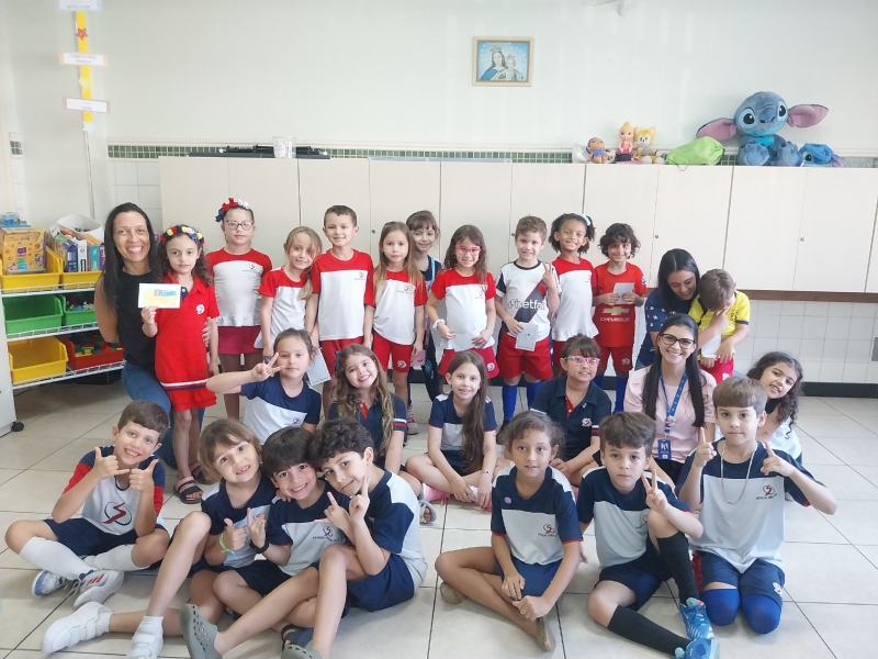 Com a chegada do final do ano, as crianças começam a expressar diferentes sentimentos em relação à transição para o 1º ano. Para tornar esse processo acolhedor e tranquilo, organizamos a participação das crianças em algumas rotinas que fazem parte do segmento do Ensino Fundamental. Como parte da programação de transição, as crianças foram convidadas a visitar uma turma de 1º ano, onde tiveram a oportunidade de tirar dúvidas sobre essa nova etapa, conversando com as crianças e a professora da turma visitada. Elas também puderam vivenciar momentos diferentes, como brincar no pátio e conhecer os espaços das salas do 1º ano, além de explorar o novo material didático que irão usar.