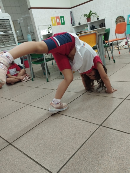 Durante essa jornada, as crianças exploraram ritmos variados e se encantaram com histórias, trajes, objetos e gestos que acompanham cada dança. Na chula, conheceram elementos da tradição gaúcha, dançaram sobre a vara e aprenderam sobre o peão e a prenda, símbolos culturais do Rio Grande do Sul.