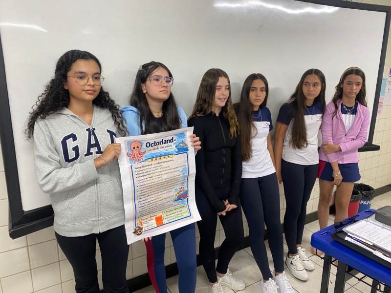 Após essas definições, os grupos elaboraram uma apresentação, utilizando tanto mídias digitais quanto materiais manuais, como cartolinas. As apresentações tiveram duração máxima de dez minutos e contaram com um momento de perguntas e intervenções realizadas por colegas e professores, o que ampliou o debate e estimulou a argumentação e o pensamento crítico dos alunos.