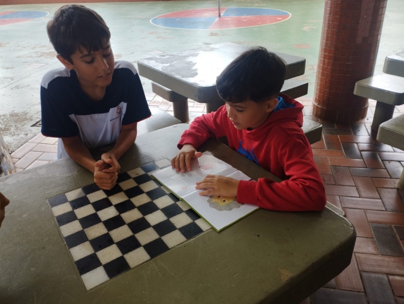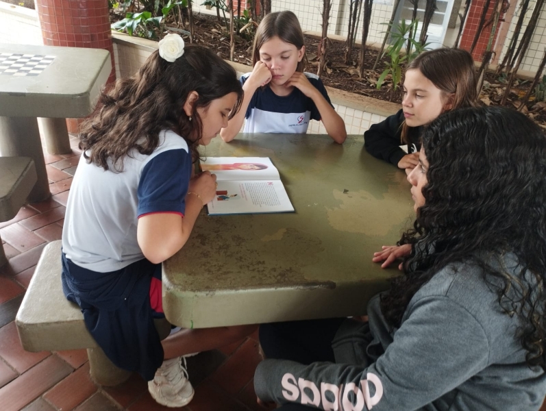 Sabemos que, no ritmo acelerado do dia a dia, é comum o livro ficar esquecido em casa. A rotina da família muitas vezes se sobrepõe ao tempo de leitura, e o costume de abrir um livro pode ser deixado de lado entre tarefas, compromissos e telas. Por isso, os professores se dedicam tanto para reconectar nossos estudantes — e as famílias —com o prazer de ler. O compromisso é criar e resgatar o gosto pela leitura, cultivando-o tanto na escola quanto dentro de cada lar, porque sabemos o quanto essa prática fortalece não só a conexão com os livros, mas principalmente com as pessoas. A gente sabe o quanto é importante poder comentar e criticar as obras, principalmente em casa, onde encontrar e descobrir opiniões significa conhecer um pouco mais sobre como as pessoas que nos cercam pensam e nos faz aproximar cada vez mais delas.