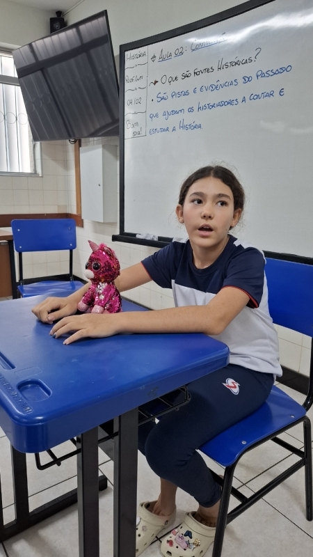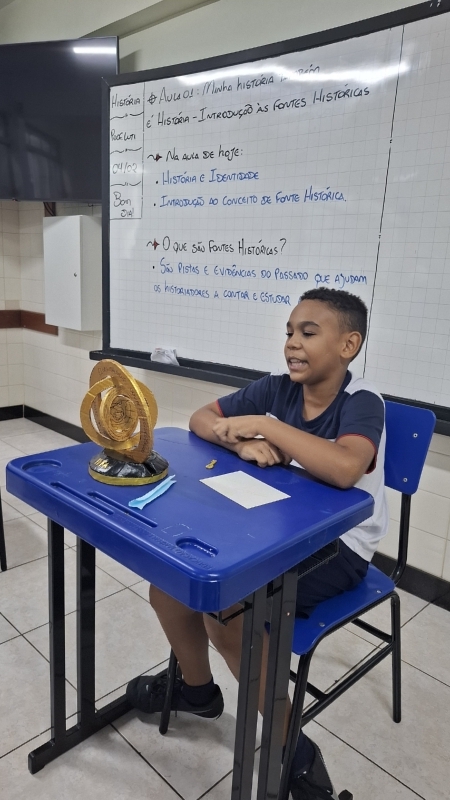 Cada aluno trouxe um objeto significativo de sua vida e compartilhou o que ele representa — memórias, conquistas, afetos e desafios. Ao ouvir esses relatos, a turma pôde compreender, na prática, que as fontes históricas não são apenas documentos antigos guardados em arquivos ou museus. Elas também estão presentes em objetos do cotidiano, nas lembranças das famílias e nas experiências que marcam nossa trajetória.