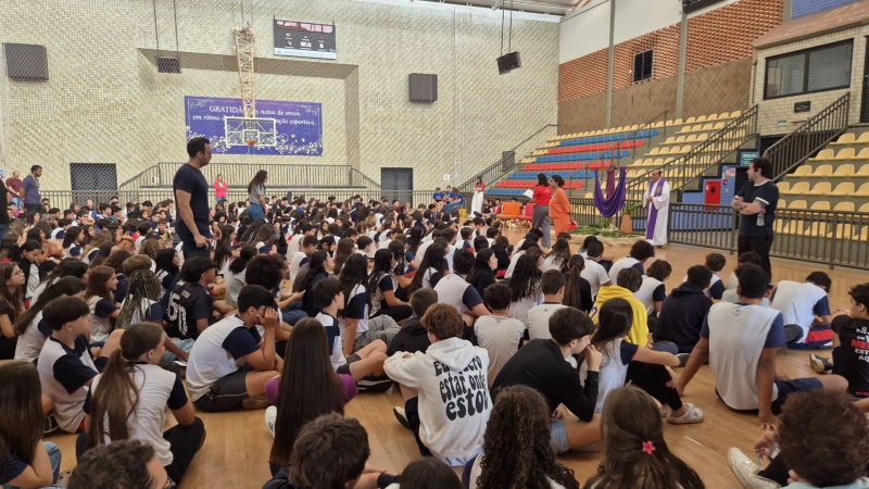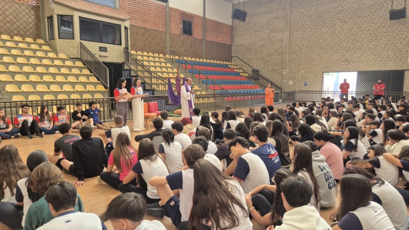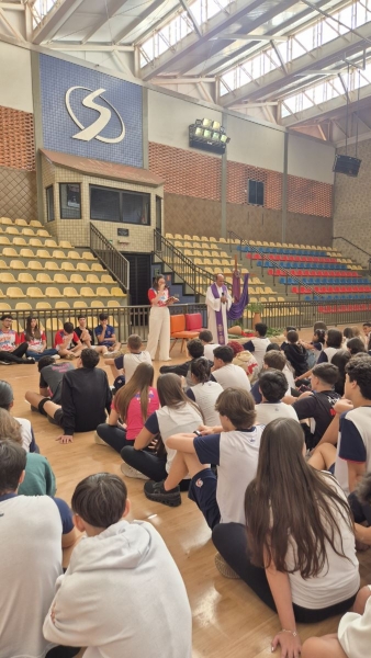 Outro destaque da programação aconteceu na quarta-feira (1º), com o Momento Penitencial conduzido pelo Padre Anchieta. A celebração foi realizada no ginásio da escola e reuniu os estudantes do Ensino Fundamental II e Ensino Médio em um momento de silêncio, reflexão e preparação espiritual para a Páscoa.