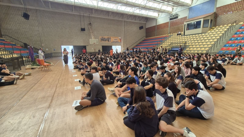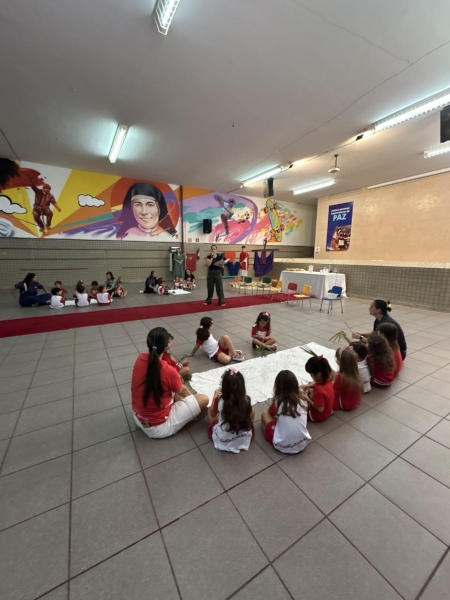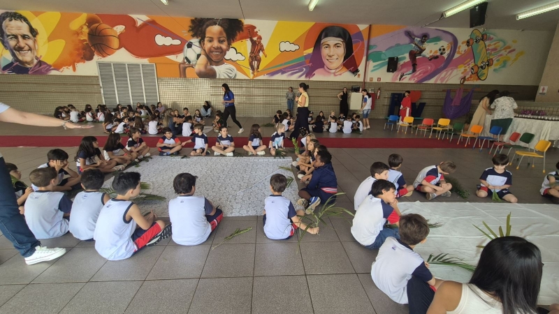 Na terça-feira (31), foi a vez dos estudantes do Ensino Fundamental I aprofundarem a reflexão. Pela manhã, as turmas dos 2º e 3º anos participaram do encontro, que teve continuidade ao longo do período. À tarde, as vivências envolveram os alunos dos 1º, 2º, 3º, 4º e 5º anos, reunidos na área coberta da escola.