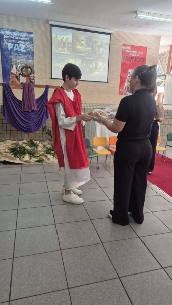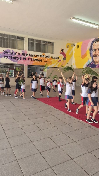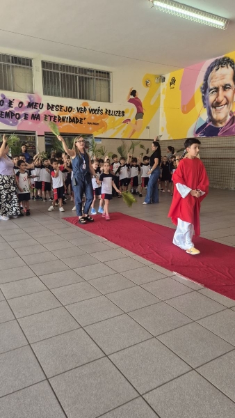 Durante esses momentos, a música “A Semana Santa Começou” acompanhou as atividades com as turmas menores, contribuindo para o clima de acolhida e espiritualidade vivenciado pelos estudantes.