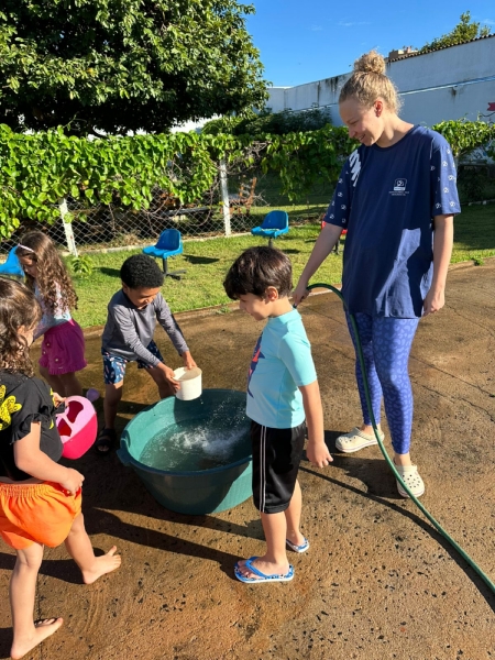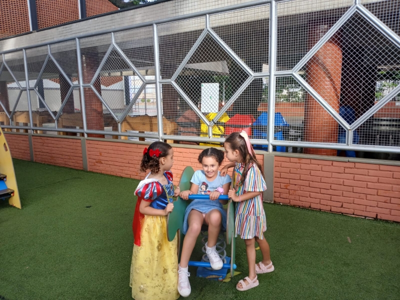 No dia a dia da turma, diferentes propostas fazem parte da rotina, como brincadeiras de faz de conta, jogos simbólicos, construções com blocos, cantigas e momentos no parque. Nessas vivências, as crianças assumem papéis, criam histórias, imitam situações do cotidiano e dão novos significados às suas experiências, exercitando a imaginação e a criatividade.