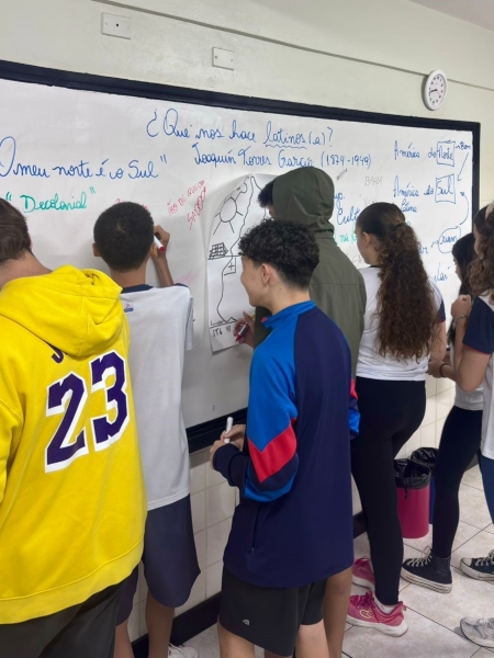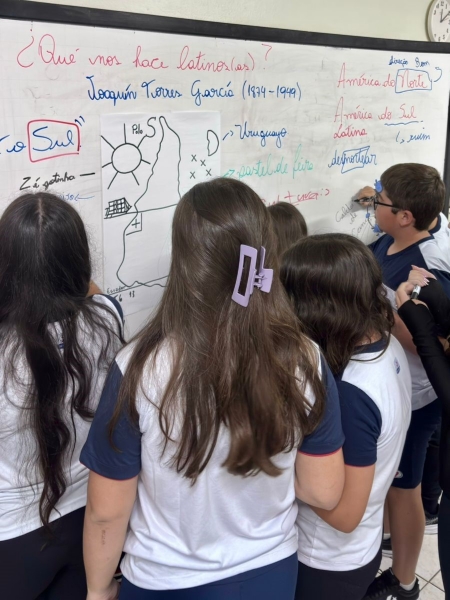 Nas aulas de Espanhol do Ensino Fundamental II, vivemos um mergulho na nossa essência latino-americana. Entre conversas, descobertas e muita troca, refletimos sobre quem somos, de onde viemos e sobre a importância de valorizar nossos artistas, escritores e movimentos culturais.