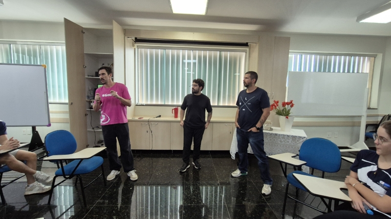A mediação ficou por conta do professor Lucas Garcia, que conduziu o debate de forma dinâmica e participativa. O encontro também contou com a presença dos professores convidados Carlos, da área de Geografia, e João Lucas, de História, que contribuíram com diferentes abordagens e contextualizações sobre o tema.