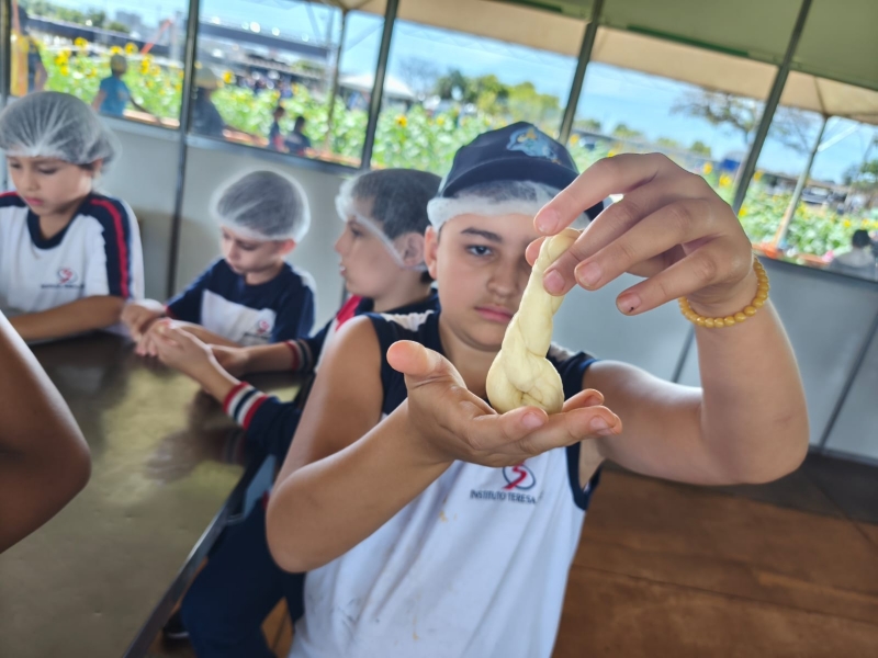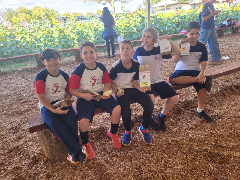 Durante a atividade, os alunos puderam observar de perto o funcionamento do campo, compreender a importância do setor primário e perceber como ele se conecta ao setor secundário e ao setor terciário. Eles participaram da produção de pães, conheceram de forma prática os processos que envolvem a agricultura, a pecuária e a transformação dos alimentos, além de refletirem sobre a importância do trabalho realizado no campo para a vida na cidade.