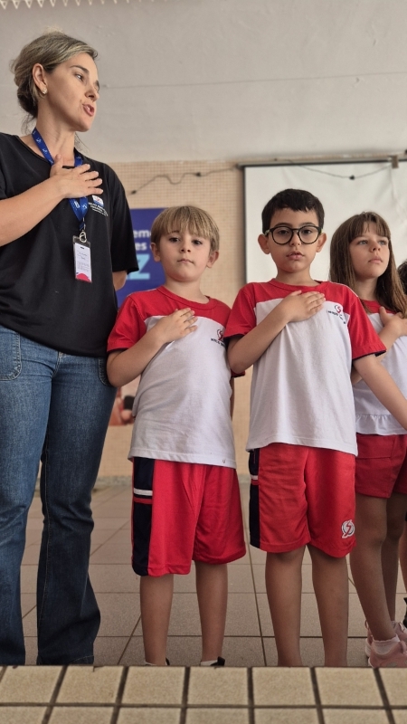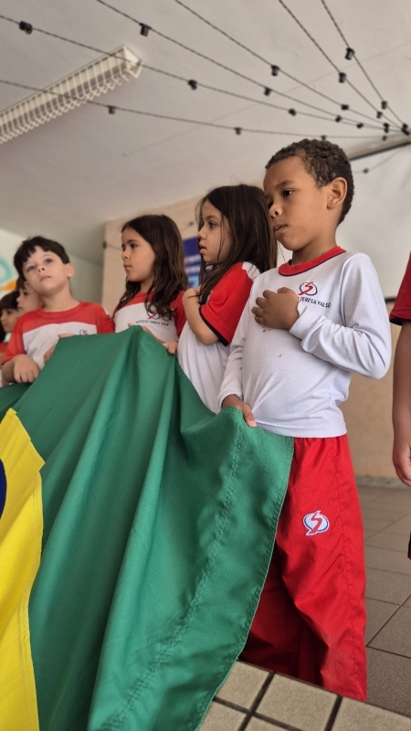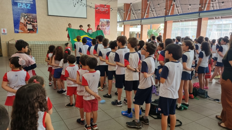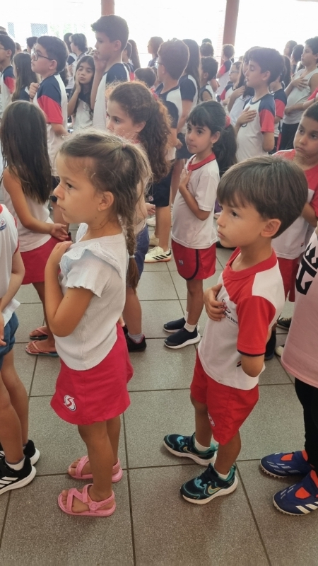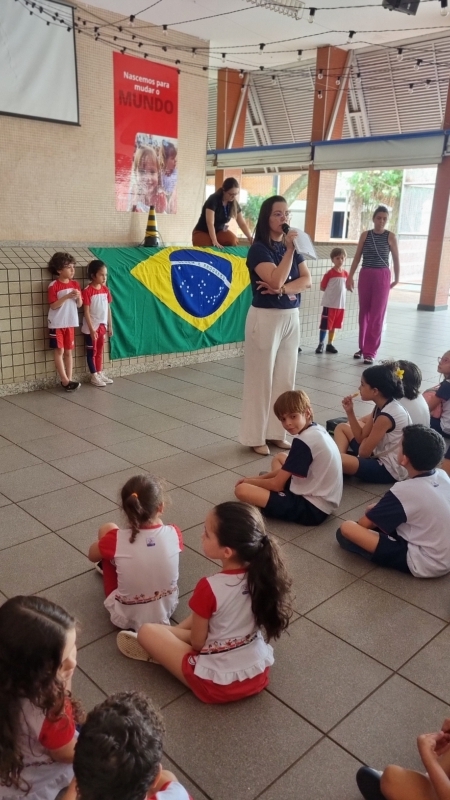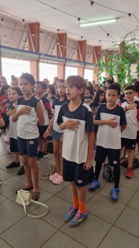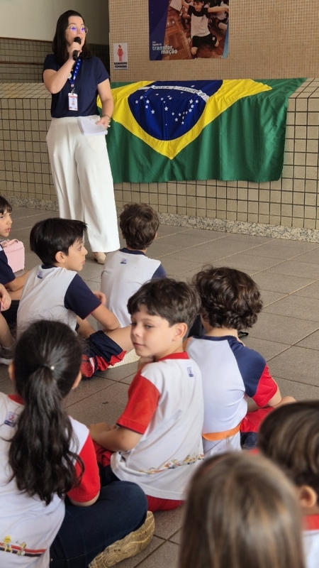 E no Fundamental I, esse momento ganhou um encanto ainda maior. A acolhida da Bandeira contou com a presença especial das crianças do Infantil 3, que em breve iniciarão o 1º ano. Elas foram recebidas com ternura pelos estudantes do segmento, compartilharam o Hino Nacional, permaneceram ao lado da Bandeira em sinal de respeito e descobriram, aos poucos, o sabor desse novo mundo que está chegando. Foi uma alegria ver cada olhar brilhando diante das conquistas que começam a florescer.