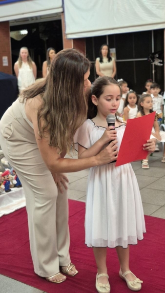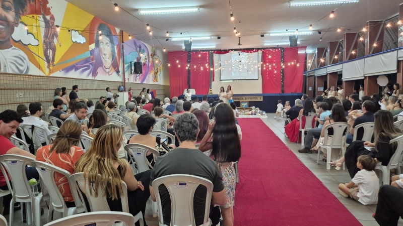 Assistimos juntos a um vídeo preparado com carinho, que retratava a passagem de um prédio para o outro, mostrando o apoio e o cuidado de toda a equipe, professoras, coordenação e crianças. Tivemos também a palavra da diretora pedagógica, Ana Paula Gerino, que trouxe uma reflexão sobre esse período tão importante na vida das crianças, que é a Educação Infantil. A diretora institucional, Irmã Rosa Idalia, falou sobre a bênção que é acompanhar cada etapa da vida dos filhos e, logo após, conduziu um momento especial de oração, no qual as famílias puderam abençoar seus filhos.