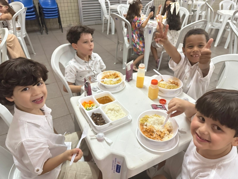 Finalizamos este grande encontro com um delicioso café da manhã. Na manhã seguinte, as crianças foram recebidas por suas famílias e puderam viver um momento especial: comer juntas, trocar abraços, matar as saudades e compartilhar histórias sobre a noite vivida.