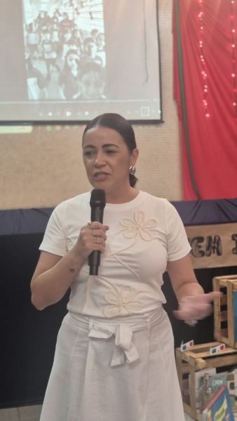 Em um momento especial, ouvimos palavras que nos lembravam que a infância é feita de começos e recomeços: crianças que dançam com as cores, atravessam histórias, inventam mundos, exploram letras, palavras e textos; crianças que crescem por dentro e por fora, porque educação é coisa do coração, como dizia Dom Bosco.