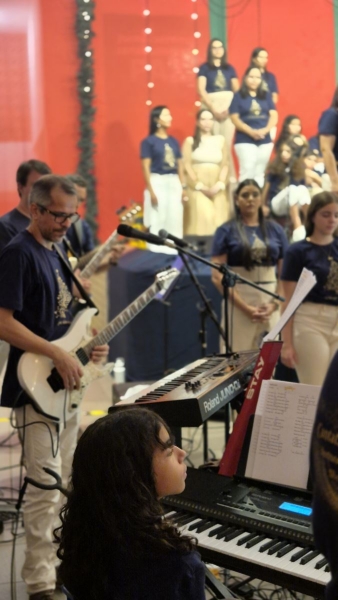 No dia 27 de novembro, nossa comunidade escolar se reuniu para celebrar a magia e a esperança do Natal em uma noite especial de encanto e emoção. A Cantata contou com a participação dedicada de alunos e colaboradores, que, com suas vozes, gestos e talentos, ajudaram a reacender memórias, despertar sentidos e revelar, mais uma vez, a beleza da verdadeira luz que habita este tempo.