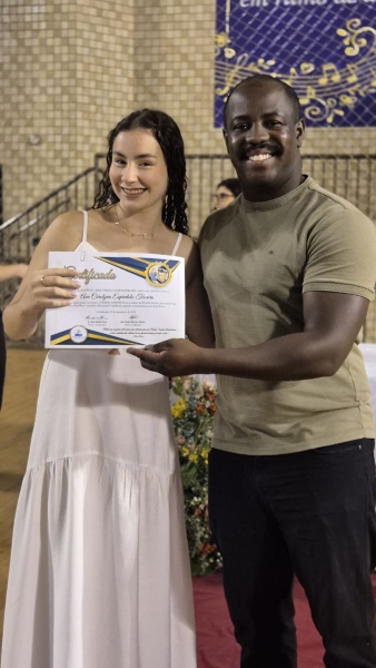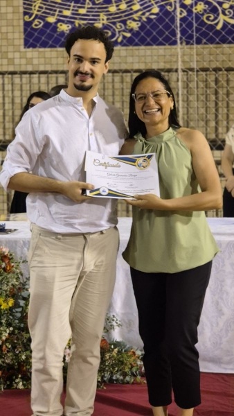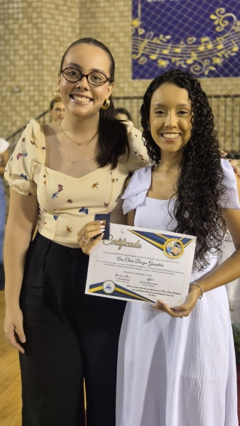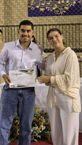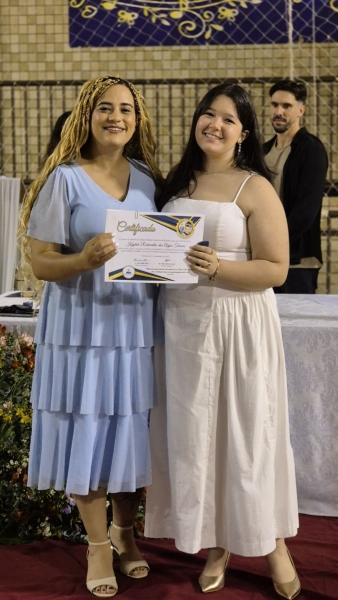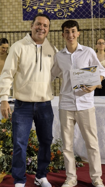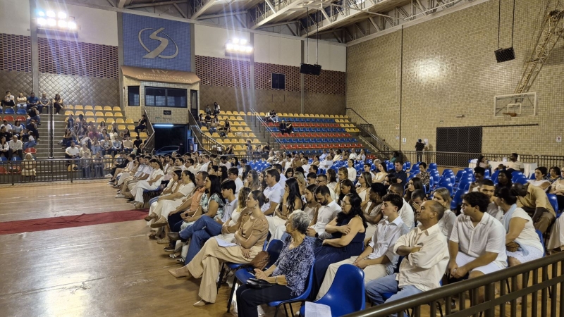 Em seguida, iniciou-se a entrega do certificado de ex-aluno salesiano, um gesto carregado de significado, que expressa o vínculo construído ao longo da caminhada educativa e pastoral. Mais do que marcar o encerramento de uma etapa da vida escolar, o momento reafirma a pertença dos estudantes à Família Salesiana, fruto da educação recebida e dos valores cultivados ao longo dos anos. O momento foi acompanhado pelo Hino da Rede Salesiana de Escolas, convidando os presentes a seguirem com ainda mais entusiasmo diante da vida e dos novos desafios que se apresentam.