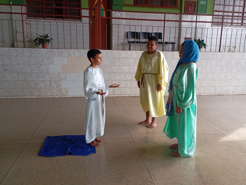 Na acolhida, os educandos, junto à educadora Neomênia, apresentaram a música “Seja Gentil”, preparando o coração de todos para esse momento especial.