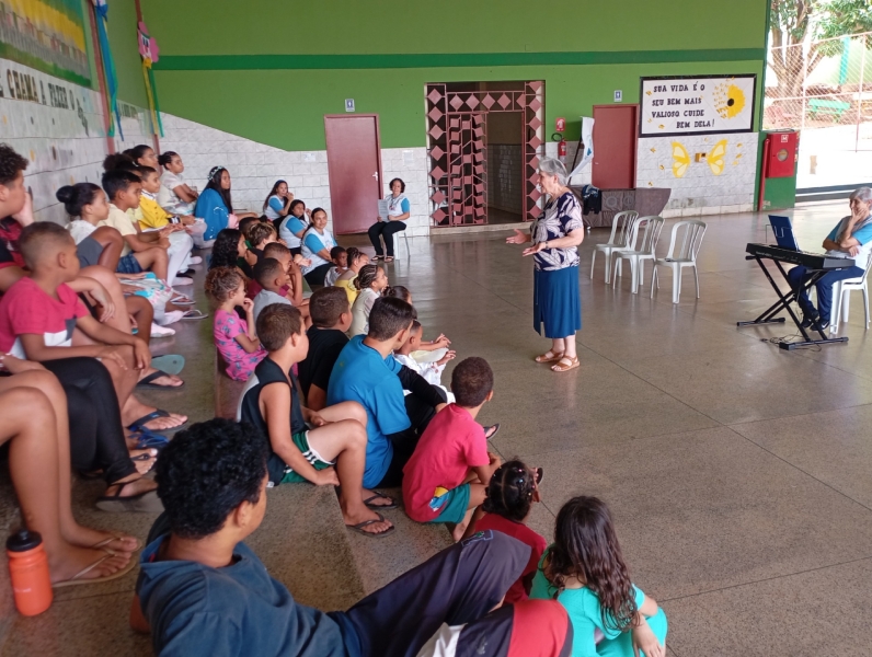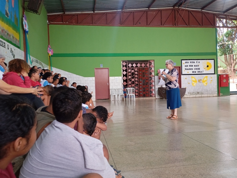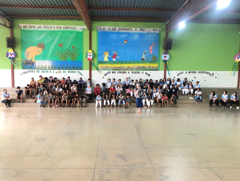 O encontro teve início com uma belíssima apresentação de dança e coral preparada pela educadora Neomênia, Irmã Ana Maria e os educandos. Em seguida, a diretora Ir. Luzia deu as boas-vindas à nossa visitante especial.