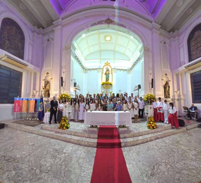 No dia 25 de fevereiro, às 19h, a Capela Nossa Senhora Auxiliadora acolheu formandos, familiares e educadores para a Missa em Ação de Graças, presidida por P. Murialdo, coordenador da Pastoral Universitária. Em um momento de espiritualidade e reflexão, os presentes agradeceram pela caminhada vivida, pelos desafios superados e pelas conquistas alcançadas ao longo da graduação.