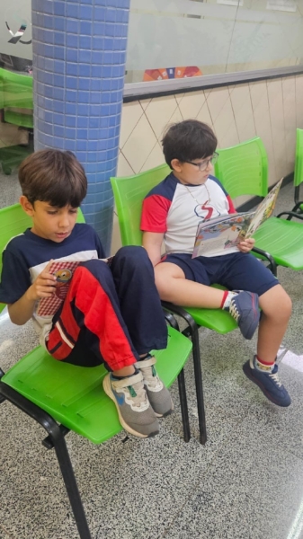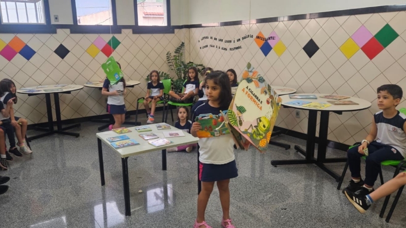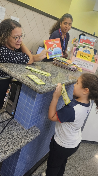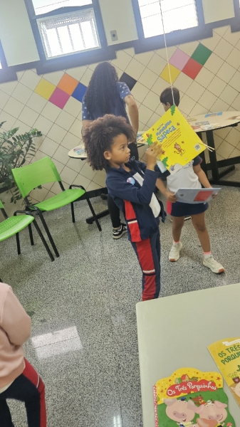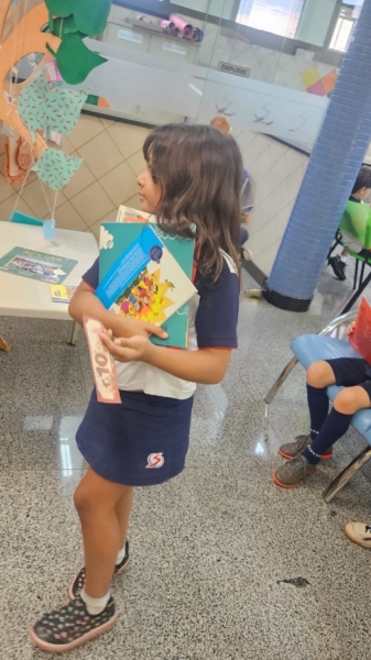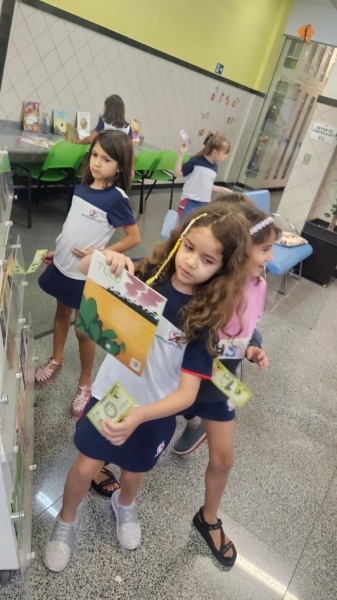 Durante a feira, as crianças tiveram a oportunidade de trocar livros entre si, promovendo momentos de interação, escolha e descoberta de novas histórias. A experiência foi muito rica, pois além de incentivar o hábito da leitura, proporcionou o desenvolvimento da consciência financeira, ao trabalhar a ideia de economia e reaproveitamento de recursos.
