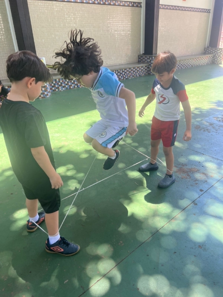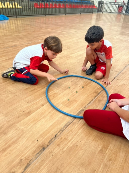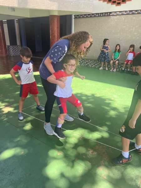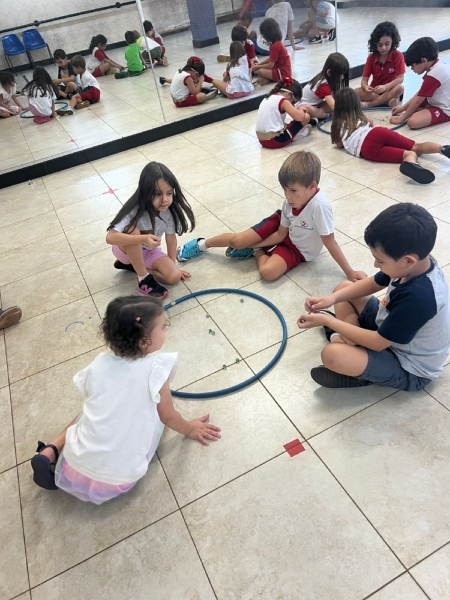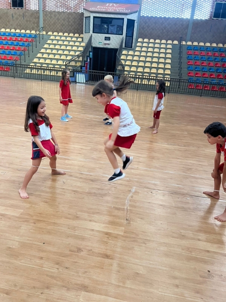 Nas últimas semanas, quem passa pelo pátio da nossa escola percebe uma cena diferente: propostas variadas nas aulas de Movimento. Isso porque as crianças estão redescobrindo brincadeiras antigas como pular elástico, jogar bolinha de gude e até andar de carrinho de rolimã, tudo com muita alegria e participação.