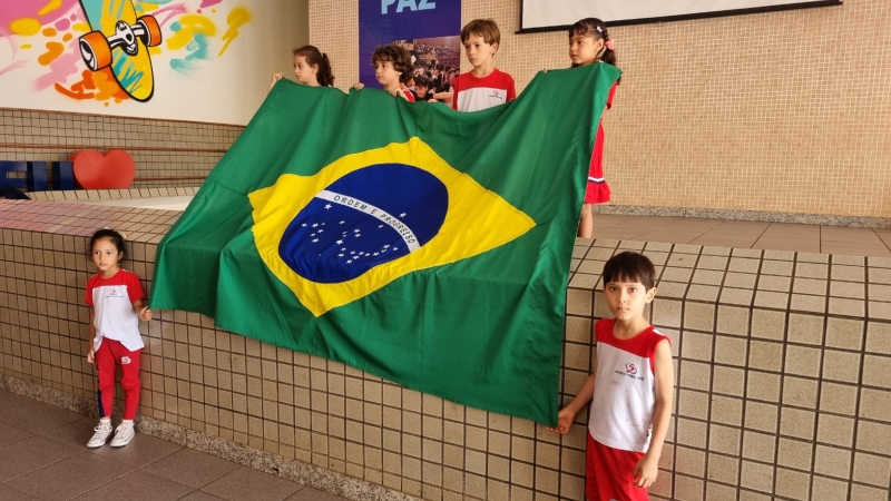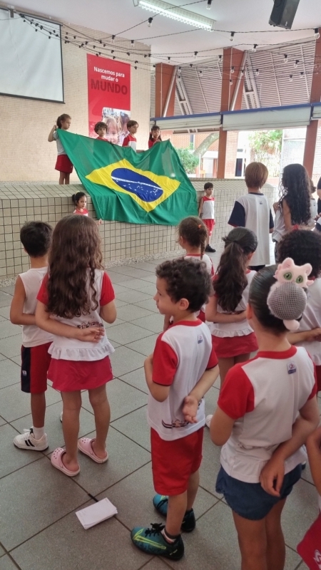 E no Fundamental I, esse momento ganhou um encanto ainda maior. A acolhida da Bandeira contou com a presença especial das crianças do Infantil 3, que em breve iniciarão o 1º ano. Elas foram recebidas com ternura pelos estudantes do segmento, compartilharam o Hino Nacional, permaneceram ao lado da Bandeira em sinal de respeito e descobriram, aos poucos, o sabor desse novo mundo que está chegando. Foi uma alegria ver cada olhar brilhando diante das conquistas que começam a florescer.