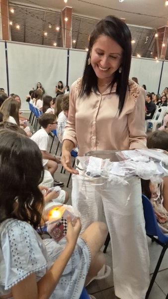 Para completar essa experiência tão especial, após a celebração os alunos participaram da aguardada Noite do Pijama, um momento de convivência, alegria e integração entre os colegas. E, na manhã seguinte, as famílias se reuniram na escola para um café da manhã afetuoso, finalizando a passagem de ciclo com presença, acolhimento e muita alegria compartilhada.