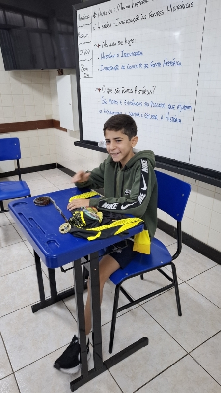 Cada aluno trouxe um objeto significativo de sua vida e compartilhou o que ele representa — memórias, conquistas, afetos e desafios. Ao ouvir esses relatos, a turma pôde compreender, na prática, que as fontes históricas não são apenas documentos antigos guardados em arquivos ou museus. Elas também estão presentes em objetos do cotidiano, nas lembranças das famílias e nas experiências que marcam nossa trajetória.