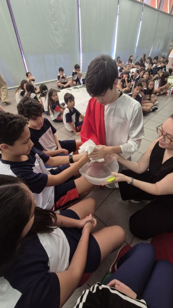 Os alunos do Ensino Fundamental II e do Ensino Médio também participaram da preparação para a Semana Santa por meio de podcasts e momentos de reflexão sobre o caminho de Jesus até a cruz. A iniciativa favoreceu uma vivência mais consciente desse período, conectando fé, valores e realidade cotidiana dos jovens.