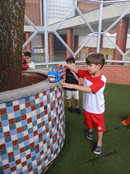 No dia a dia da turma, diferentes propostas fazem parte da rotina, como brincadeiras de faz de conta, jogos simbólicos, construções com blocos, cantigas e momentos no parque. Nessas vivências, as crianças assumem papéis, criam histórias, imitam situações do cotidiano e dão novos significados às suas experiências, exercitando a imaginação e a criatividade.