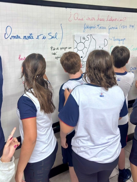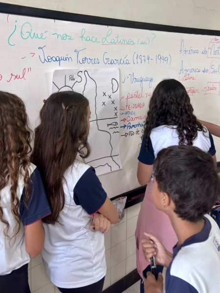 Nas aulas de Espanhol do Ensino Fundamental II, vivemos um mergulho na nossa essência latino-americana. Entre conversas, descobertas e muita troca, refletimos sobre quem somos, de onde viemos e sobre a importância de valorizar nossos artistas, escritores e movimentos culturais.