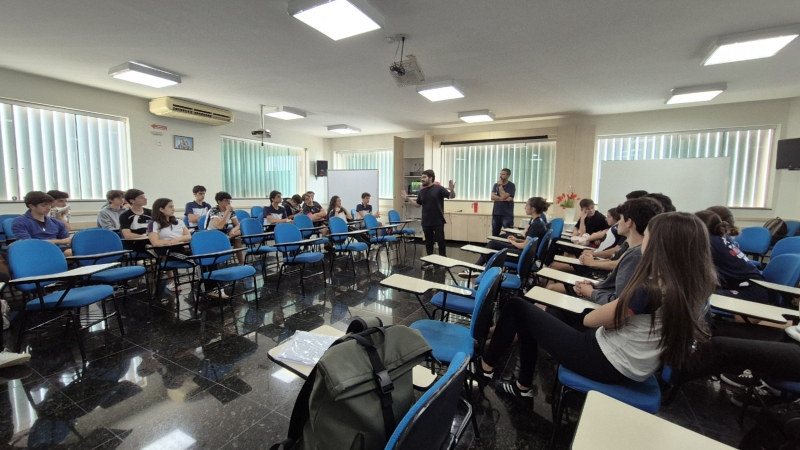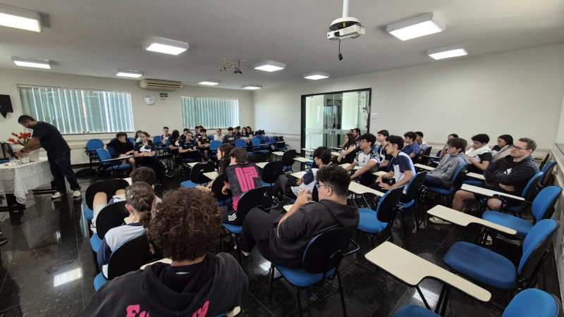 Com o tema “O conflito no Oriente Médio”, o encontro proporcionou aos alunos a oportunidade de ampliar o olhar sobre um dos assuntos mais complexos e atuais do cenário global, incentivando o pensamento crítico e a análise de diferentes perspectivas.