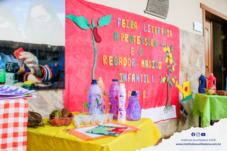 E é claro que tivemos a tradicional exposição de trabalhos das crianças da Educação Infantil em nossa 10ª Semana Literária! 😍 O capricho de nossos alunos e educadores se destacou no pátio da escola, dando vida aos títulos "Quer conhecer o meu jardim?" e "A professora e o regador mágico" de Jonas Ribeiro, "Quanto cabe", de Bill Borges e "Quem sou eu", de Aline Pinto - todos trabalhados em sala de aula. 🥰📚