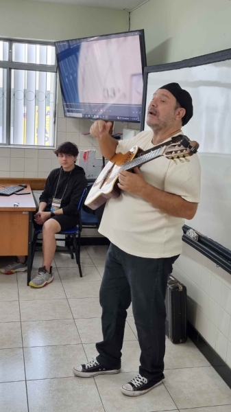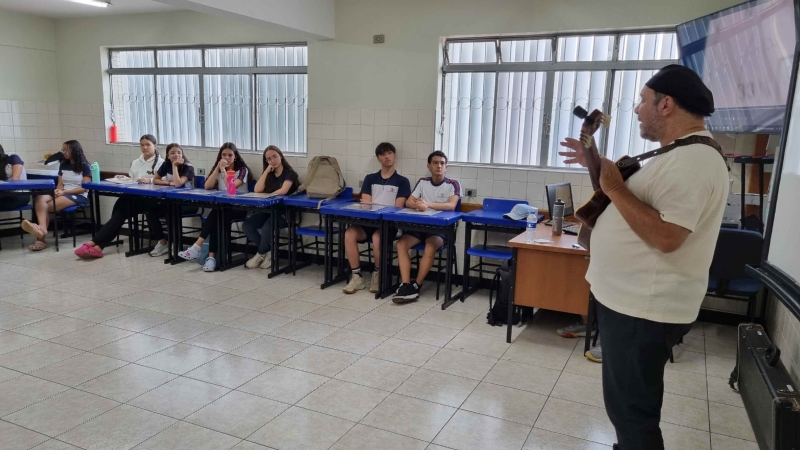 Durante a apresentação, o palestrante também falou sobre o Clube da Esquina, movimento musical que nasceu em Minas Gerais e reuniu grandes artistas como Milton Nascimento e Lô Borges. Ele explicou que o grupo foi essencial para renovar a MPB, misturando elementos do rock, do jazz e da música regional brasileira. Além disso, algumas músicas foram tocadas ao vivo, tornando a oficina mais envolvente e animada.