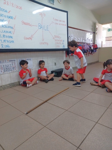 Durante essa jornada, as crianças exploraram ritmos variados e se encantaram com histórias, trajes, objetos e gestos que acompanham cada dança. Na chula, conheceram elementos da tradição gaúcha, dançaram sobre a vara e aprenderam sobre o peão e a prenda, símbolos culturais do Rio Grande do Sul.