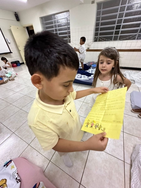 Entre risadas, histórias, brincadeiras e rituais de cuidado, as turmas viveram uma noite inteira de convivência, vínculos e encantamento. Brincaram, jantaram juntas e depois foram para os quartos, onde tudo estava preparado com carinho pelas famílias. Receberam as cartinhas deixadas pelos responsáveis e adormeceram embaladas pela alegria e pela certeza de que estavam seguras, acolhidas e amadas.