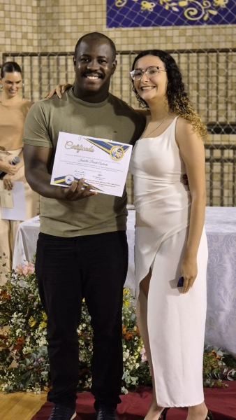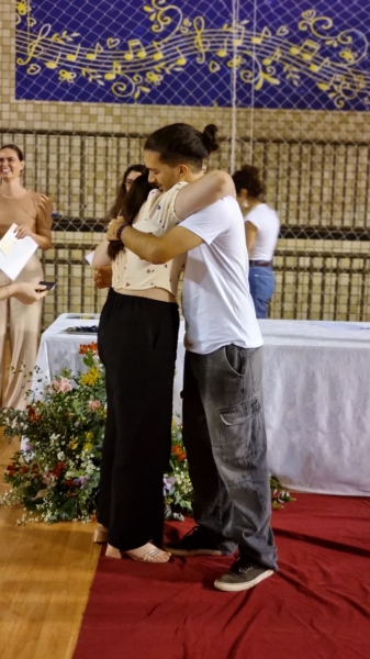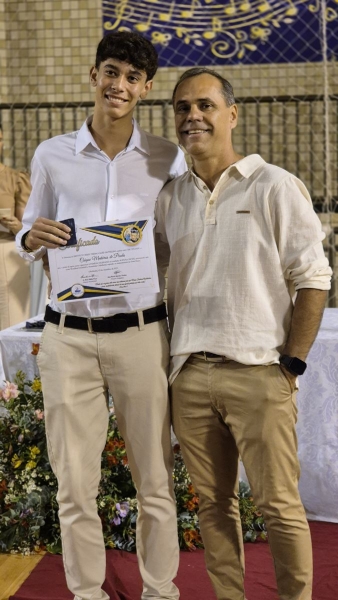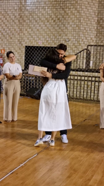 Em seguida, iniciou-se a entrega do certificado de ex-aluno salesiano, um gesto carregado de significado, que expressa o vínculo construído ao longo da caminhada educativa e pastoral. Mais do que marcar o encerramento de uma etapa da vida escolar, o momento reafirma a pertença dos estudantes à Família Salesiana, fruto da educação recebida e dos valores cultivados ao longo dos anos. O momento foi acompanhado pelo Hino da Rede Salesiana de Escolas, convidando os presentes a seguirem com ainda mais entusiasmo diante da vida e dos novos desafios que se apresentam.