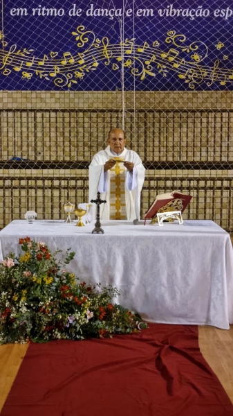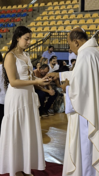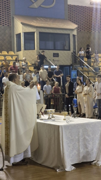 Presidida pelo Pe. Anchieta, a Celebração Eucarística contou com a participação ativa dos formandos, que colaboraram nas leituras e no momento do ofertório, tornando a celebração ainda mais significativa.