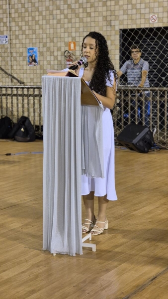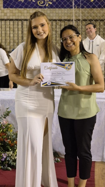 Após a Celebração Eucarística, iniciou-se o momento de homenagens, repleto de palavras de gratidão a Deus, aos pais, à turma, aos educadores, à escola e aos funcionários, reconhecendo o apoio e a dedicação que fizeram parte dessa jornada. Na sequência, a Coordenadora Sílvia Ferreira, a Diretora Pedagógica Ana Paula Gerino e a Diretora Institucional Irmã Rosa Idalia Pesca expressaram ternas palavras aos formandos, refletindo sobre a fé, a trajetória dos estudantes salesianos e reforçando a missão cumprida de ajudá-los a se tornarem “bons cristãos e honestos cidadãos”.