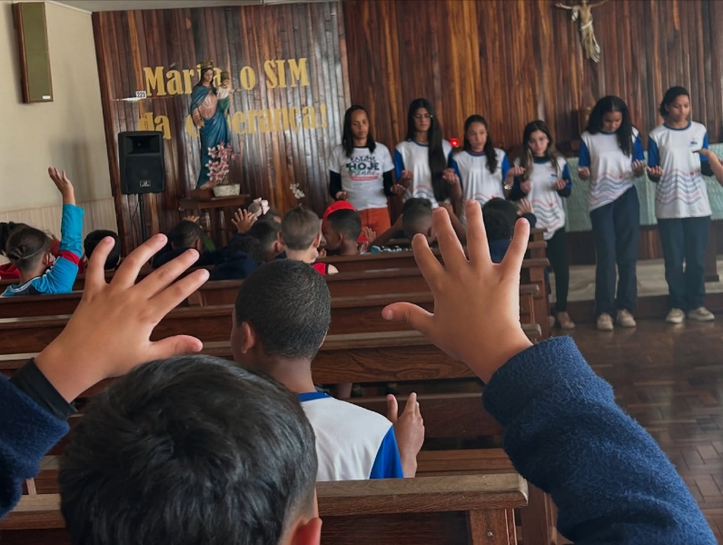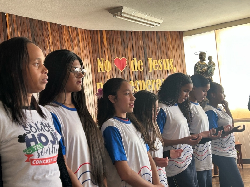 A Celebração Eucarística, presidida pelo Pe. José Paulino, reforçou a presença dos jovens na caminhada com Cristo. E em um momento emocionante, as FMA expressaram gratidão e devoção a Maria cantando juntas “Oh Qual Sorte!”, sinal de união, alegria e identidade como irmãs do Instituto.