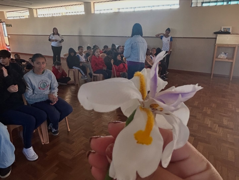 Na acolhida do dia 18 de agosto, a educadora Tatiane encantou com a história das princesas e das flores. O rei, em sua sabedoria, escolheu para Rainha aquela que entregou a flor mais valiosa: a flor da honestidade.