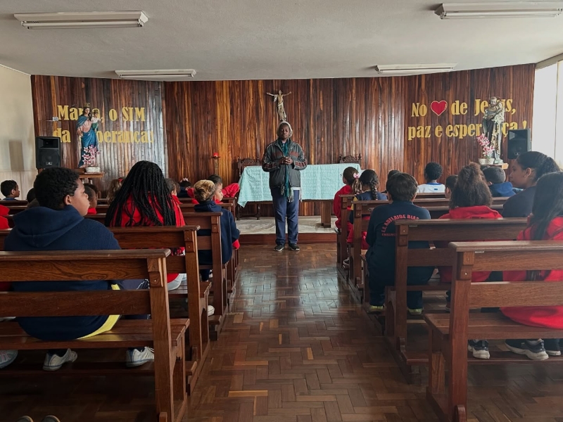 Na acolhida do dia 25 de agosto, a Tia Ana compartilhou a história da Flor, do Incêndio e da Floresta. Uma reflexão especial sobre a importância de cada um fazer a sua parte pelo bem da nossa casa comum, pelo cuidado com a boa convivência, pelo afeto e pelos relacionamentos.