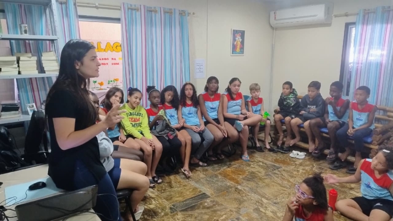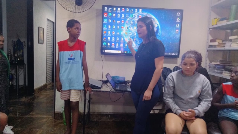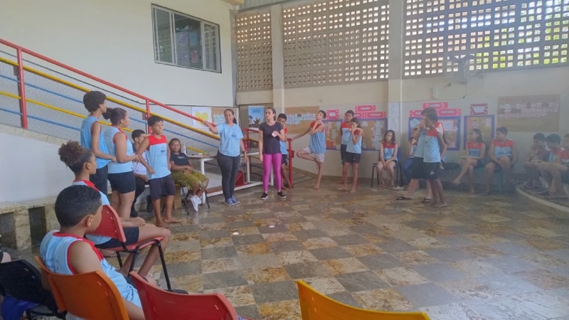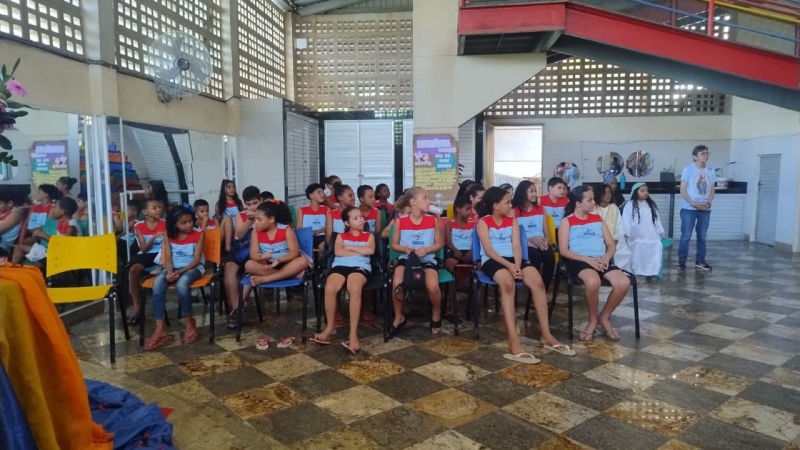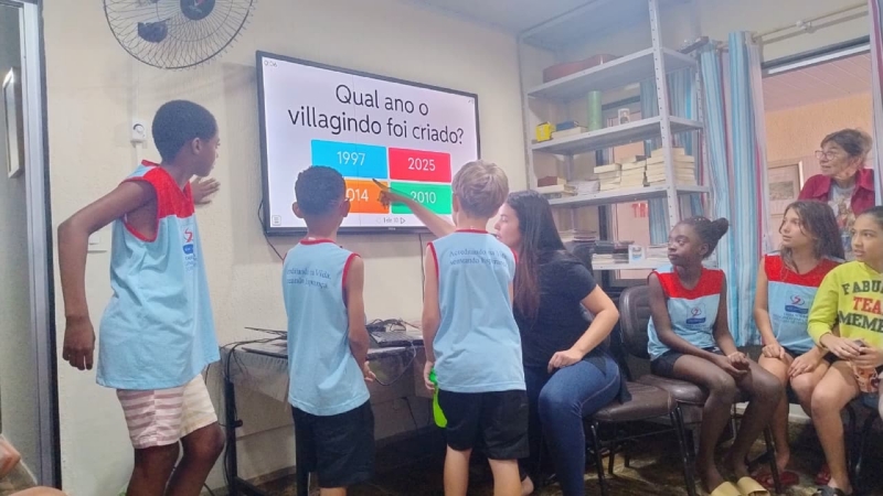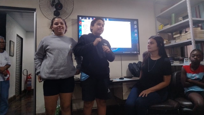 Após o momento celebrativo, as crianças e adolescentes participaram de atividades coletivas relacionadas à Bíblia, como o Quiz Bíblico, Jogos Temáticos e a exibição de vídeos produzidos pelos participantes da Oficina de Tecnologia Verde, além de outras dinâmicas em grupo.