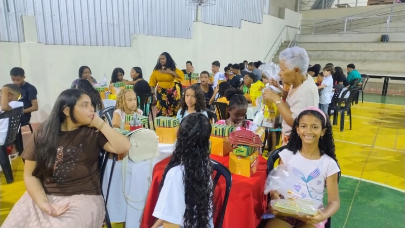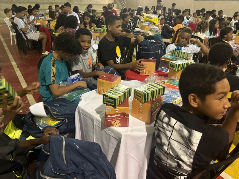 A celebração ganhou um brilho ainda maior com a entrega de presentes. Graças a uma rede de apoio fundamental, cada participante recebeu kits escolares, panetones e caixas de bombom. O gesto simbólico reafirma o compromisso da Villagindo e de seus parceiros com o futuro de cada jovem.